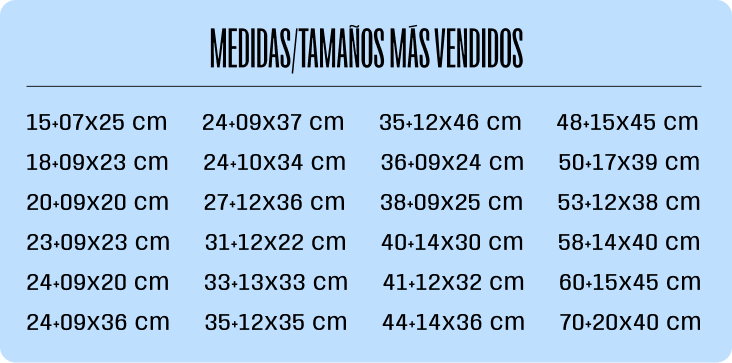 En caso de querer un tamaño personalizado o más de dos colores ponte en contacto con nosotros, estaremos encantados de atenderte.